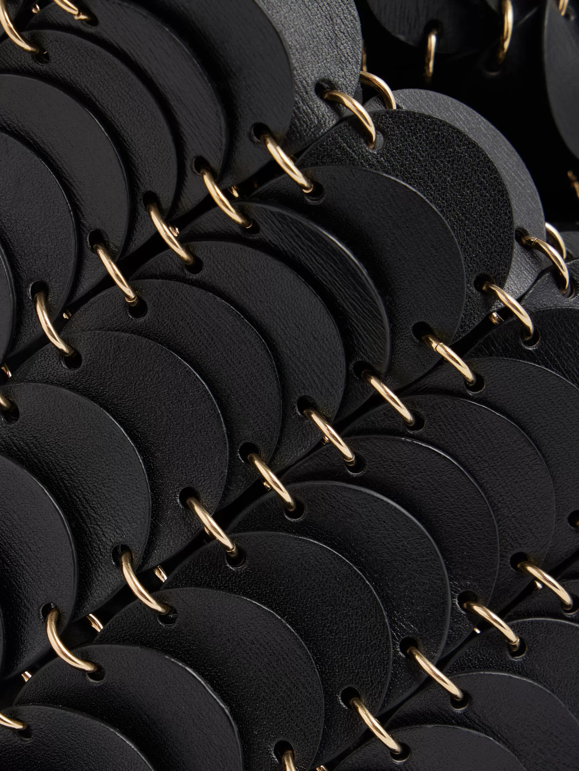 Color: BlackHandle in leather, attached to the bag with a metal link. Gold metalwork.Closure with a gold zipper