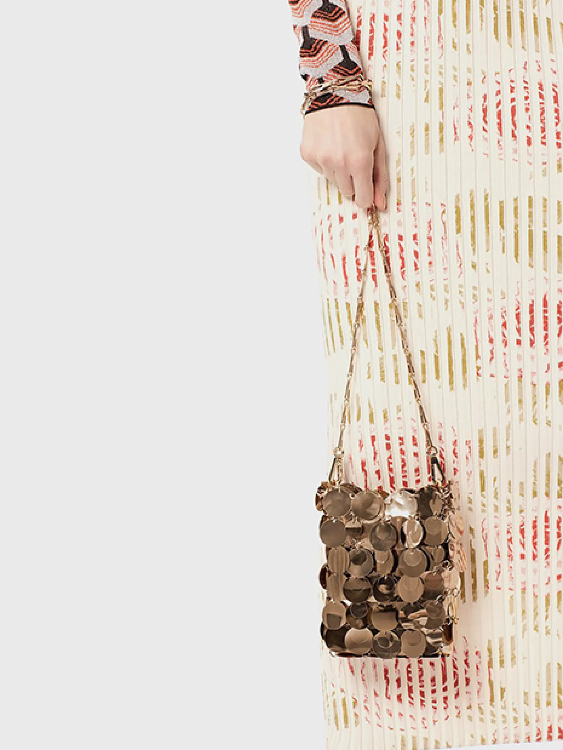 Le design de ce mini sac emblématique distinctif présente un affichage subtil desequins dorés qui illustrent parfaitement le style et l’esprit de Maison Rabanne.