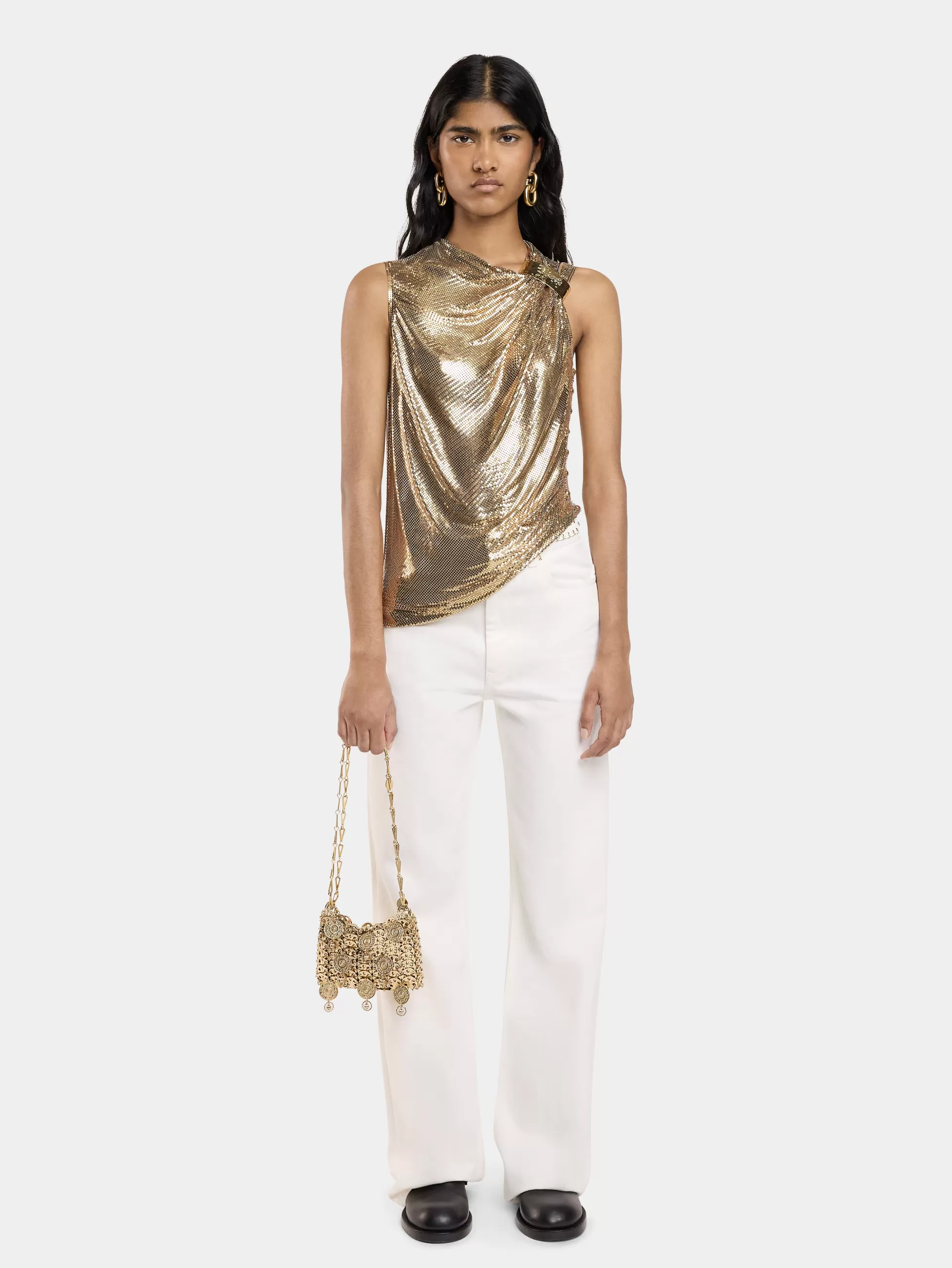 Couleur : OrChaine métallique dorée siglée du logo « Rabanne »Multiples portés, main, épaule ou crossbodyDétails d…